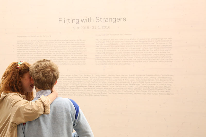 Central tasks of the 21er Haus comprise collecting, preserving, studying, and not least exhibiting contemporary Austrian art in an international context. Flirting with Strangers presents works by more than one hundred artists in a show that seeks to rethink the format of a collection exhibition: it deliberately unfolds along achronological lines and independent of the history of styles while occasionally emphasising seemingly negligible aspects or similarities that might be far fetched – with the intention to sharpen our focus on detail and the individual piece and at the same time to propose possible unexpected relationships among things.