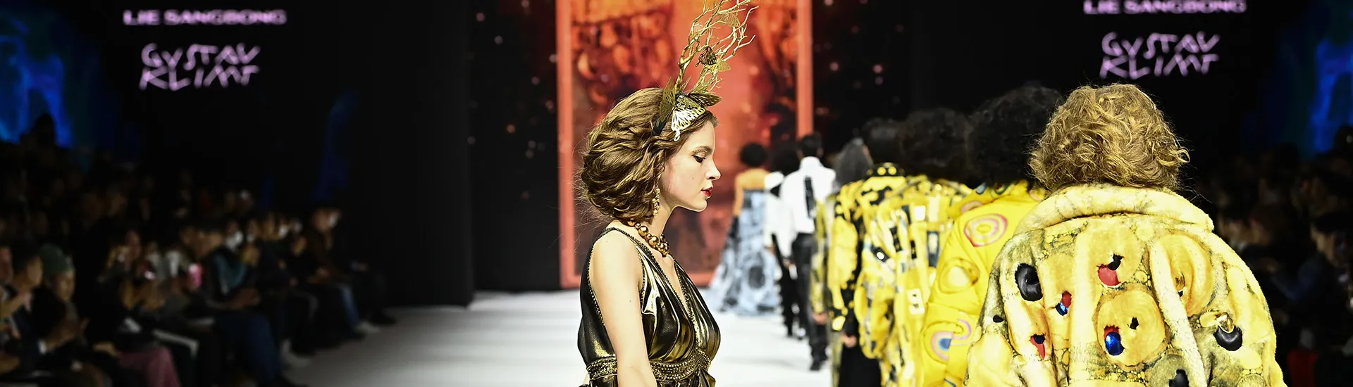 Inspired by Gustav Klimt’s The Kiss, Korean fashion icon Lie Sang Bong unveiled his latest collection of the same name at Seoul Fashion Week, drawing wide media attention.