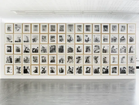 Während Günter Brus in frühen Arbeiten den Körper als Trägermaterial des malerischen Prozesses nutzt, dient ihm dieser in späteren Performances und Aktionen als Projektionsfläche seiner Gesellschaftskritik. Wegen seiner Teilnahme an der Wiener Aktion Kunst und Revolution wird Brus 1970 verurteilt und geht ins Berliner Exil. Dort entstehen zahlreiche zeichnerische Zyklen, die auf den Erfahrungen des Künstlers in Wien aufbauen, sowie Entwürfe für Theaterstücke.