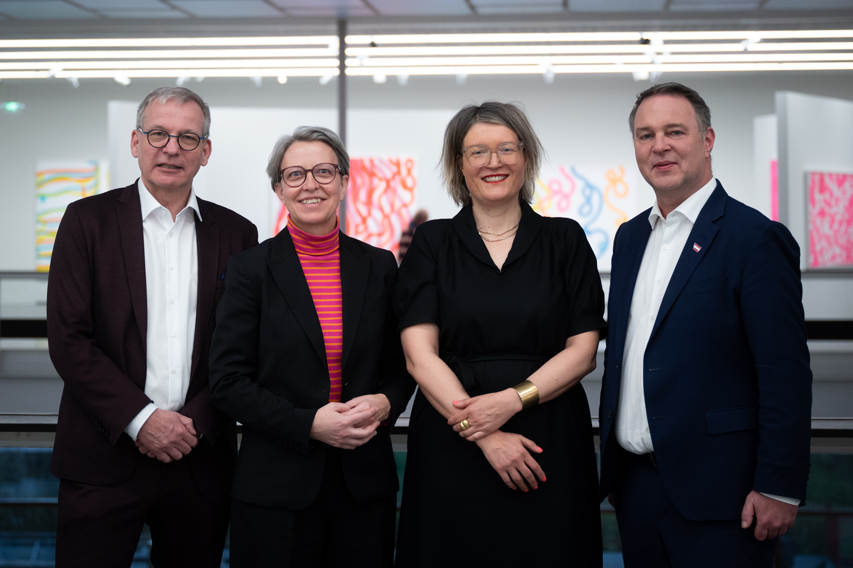 Wolfgang Bergmann (wirtschaftlicher Geschäftsführer Belvedere), Theresia Niedermüller (Leiterin der Kunst- und Kultursektion sowie Mitglied der Findungskommission), Nina Zimmer (designierte Generaldirektorin Belvedere), Kulturminister Andreas Babler.