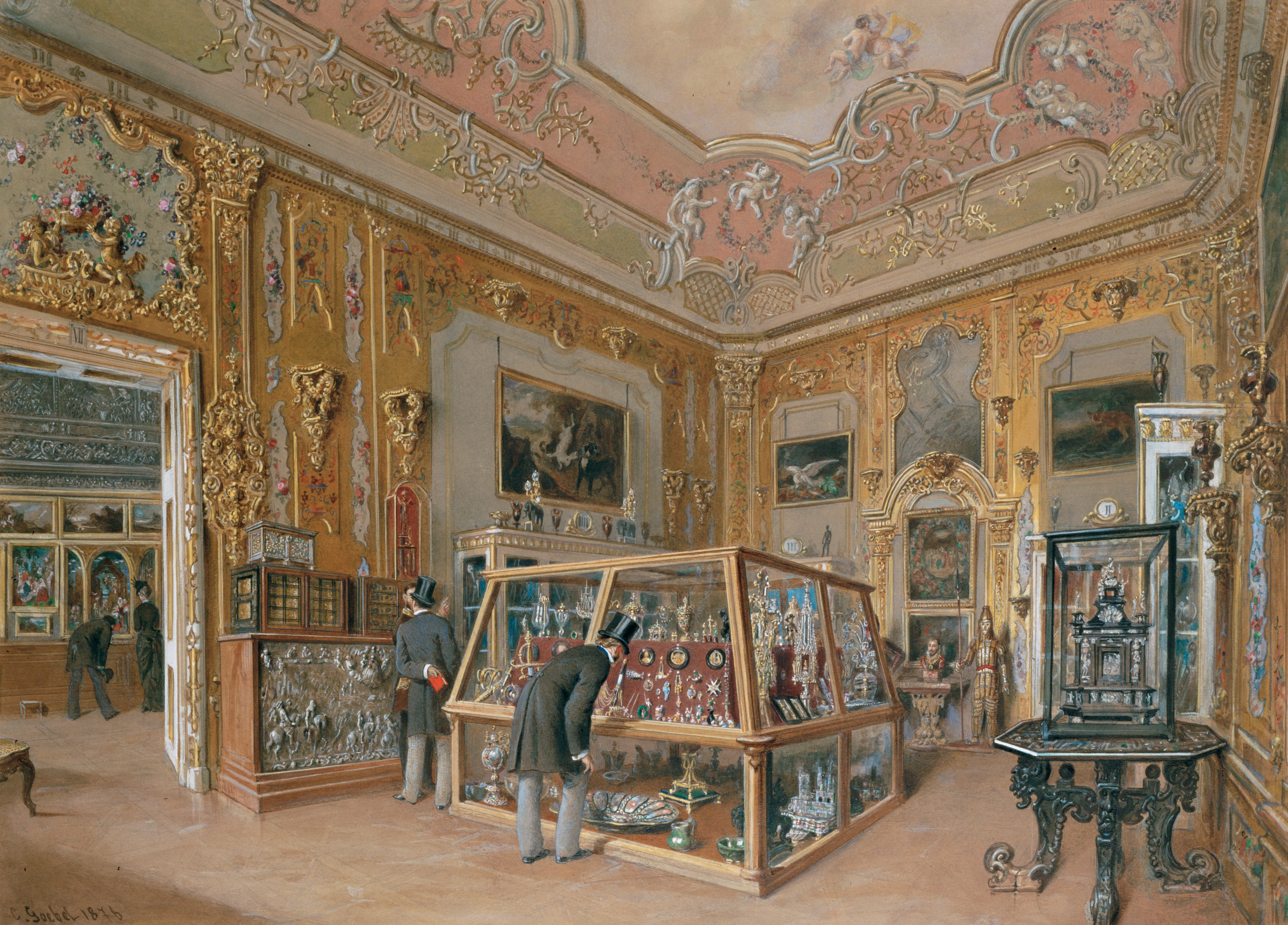 Das Goldkabinett wurde schon früh auch museal genutzt – etwa Anfang des 19. Jahrhundert zur Präsentation der Ambraser Sammlung, bevor diese ins Kunsthistorische Museum übersiedelte.