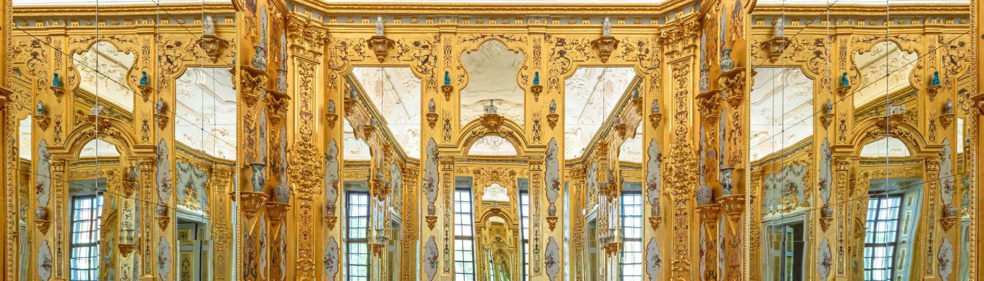 Grotesken, Blumenmotive und allegorische Darstellungen strukturieren die Wände und verweisen auf ein komplexes System von Bedeutungen, das im 18. Jahrhundert ebenso dekorativ wie inhaltlich aufgeladen war. Wer genauer hinsieht, entdeckt im Goldkabinett weit mehr als ein prachtvolles Interieur.