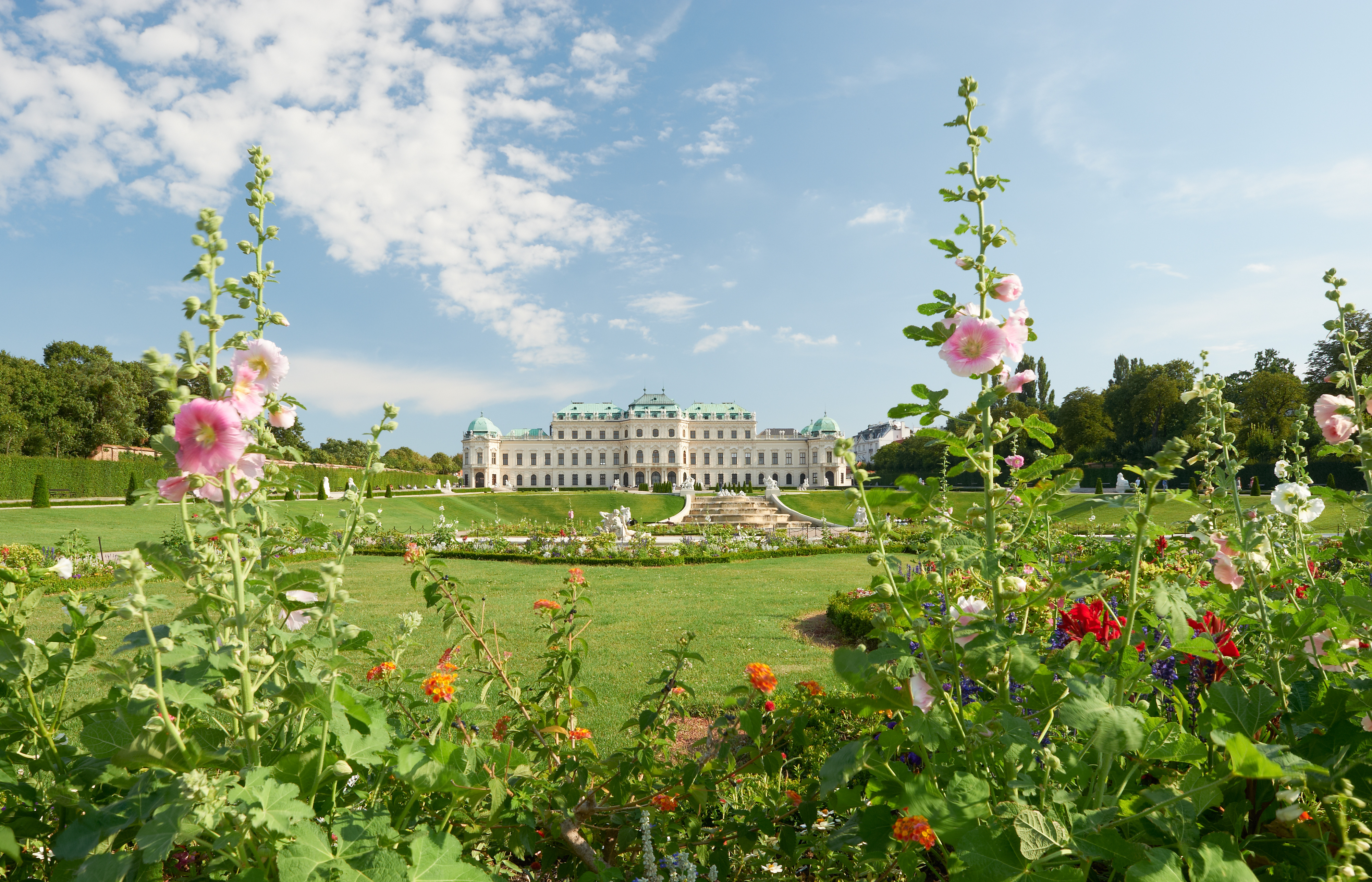Oben angekommen lohnt es sich, kurz innezuhalten: Vom Oberen Belvedere aus eröffnet sich der berühmte Canaletto-Blick über die Gartenanlage bis zur Wiener Innenstadt. Diese Perspektive fasziniert seit dem 18. Jahrhundert, als der Venezianische Maler Bernardo Bellotto, genannt Canaletto, das Wiener Stadtbild im Gemälde „Wien, vom Belvedere aus gesehen“ verewigte. Der Ausblick hat bis heute nichts von seiner Wirkung verloren.